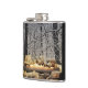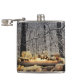Cette fiole présente une scène de solstice d'hiver saisonnière d'une Yule en feu Se connecter dans une ancienne forêt de trèfle des neiges.
