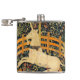 Flacon représentant la tapisserie médiévale La licorne en captivité (1495-1505). La septième tapisserie de The Unicorn Tapestries, également connue sous le nom de The Unicorn Rests in a Garden, montre une licorne blanche avec un collier bleu assis à l'intérieur d'une clôture. L'herbe verte et de belles fleurs entourent la licorne. Un cadeau fantastique pour les collectionneurs d'art médiéval et les amateurs d'imaginaires !