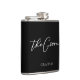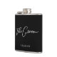 Ce flacon de marié chic et simple présente le nom de votre marié sous une typographie blanche minimaliste sur fond noir. Personnalisez ce cadeau de mariage élégant et moderne pour votre mariage ou enterrement de vie de garçon.
