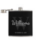 Ajoutez une touche personnelle à votre mariage avec un flacon de toiletteurs personnalisé. Ce flacon contient le nom personnalisé du marionnettiste en style de police de script classique blanc avec des détails mariages en style de police serif classique blanc et monogramme en style de police serif classique gris en arrière - plan, sur arrière - plan noir. Aussi parfait pour le meilleur homme, père de la mariée et plus.