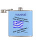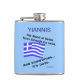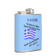 Flasque personnalisée montrant un drapeau grec ondulant et lisant "Le sang de l'Hellas coule dans mes veines. Et parfois...son ouzo." Amusant pour un rire le jour d'Oxi ou à tout moment. La couleur de fond est bleue. Il peut être changé en n'importe quoi que vous aimez. Cadeau idéal pour papou ou papa pour la fête des pères.