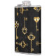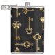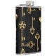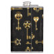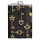 Seamless pattern of antique, gold and silhouette keys on black background.