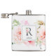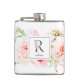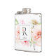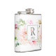 Elégante aquarelle rose vif, fleurs bordeaux et blanches et verdure de jardin délicate avec la lettre "R" ornée en ardoise gris, fiole monogramme. Flask dispose d'une ligne de texte modèle unique à personnaliser avec le nom.