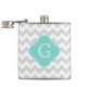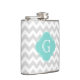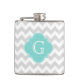 Flasques Light Gray White Chevron Aqua Quatrefoil monogram