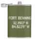 Coordonnées de la carte de latitude et longitude pour Fort Benning - Columbus, Géorgie Le flacon enveloppé de vinyle présente une police blanche de style pochoir sur l'arrière - plan vert de l'Armée.