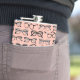 Ce flacon présente une variété de différentes lunettes et lunettes montées en noir et blanc sur un rose pâle.