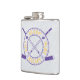 2 couleurs vintage look design dans des couleurs contrastées or et violet. Avec des bâtons de hockey croisés et des rondelles de hockey, et le texte EAT SLEEP JOUER HOCKEY.