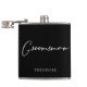 Ce flacon pour garçon d'honneur chic et simple présente les noms de vos garçons d'honneur sous une typographie blanche minimaliste sur fond noir. Personnalisez ce cadeau de mariage élégant et moderne pour votre mariage ou enterrement de vie de garçon.