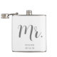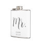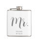 Un script personnalisé moderne blanc et gris personnalisé M. Groom nom mariage daté flacon. Personnalisez ceci pour une tenue de cadeau de mariage, et ou un cadeau fiançailles.