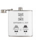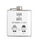 Simple, minimaliste, moderne mariage gay noir et blanc sauver la date invitation flask, avec vintage chic casquettes et bow cravates dessin monogrammes.