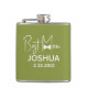 Un cadeau de Mariage personnalisé qui peut être personnalisé avec le nom du meilleur homme ainsi que la date du mariage. La fiole verte a un design élégant et moderne avec un graphisme à cravate arc. Un grand cadeau pour le marié de donner son meilleur homme.