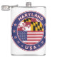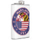 Badge du Maryland avec drapeau du Maryland et drapeau des Etats-Unis couleurs, forme arrondie. Emblème du Maryland. Sceau du Maryland. Collection USA Etats.