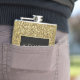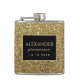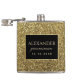 Flasque de Garçon d'Honneur Luxueux Noir et Or à Paillettes et Monogramme. Élégant, chic, glamour.