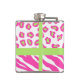 Flasques Monogramme de peau de léopard blanc rose chaud