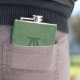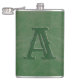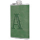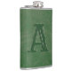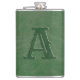Cette fiole rustique personnalisée pour hommes présente un arrière - plan texturé en cuir faux vert avec une initiale monogrammée que vous pouvez personnaliser. Conçu par un artiste de renommée mondiale ©Tim Coffey.