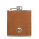 Simple monogrammed flask présente un design moderne avec emblème de monogramme en or métallique brossé sur arrière - plan texturé en cuir marron sable. Idéal pour les anniversaires, la remise des diplômes, la retraite, les cadeaux de toiletteurs mariages et plus encore.