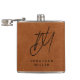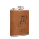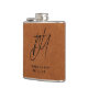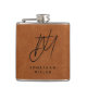 Simple monogrammed flask présente un design minimaliste moderne avec des initiales de script brossé avec votre nom ci-dessous sur un arrière - plan en cuir tourbé brun sable texturé. Parfait pour les anniversaires, la remise des diplômes, la retraite, les mariages et plus.