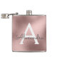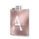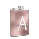 Flacon Élégant Monogrammé à Faux Feuille et Paillettes en Or Rose Pâle. Ce Flacon peut être personnalisé pour inclure votre initiale et votre prénom. Le Flacon en Or Rose Pâle est parfait pour une célébration d'anniversaire ou d'enterrement de vie de jeune fille.