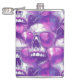 Découvrez un design motif de crâne frappant et pointu, avec des crânes minutieusement détaillés portant des lunettes de soleil audacieuses et teintées de violet. Le design combine des textures grunge, des éclaboussures vives de teintes magenta et violet, et des effets de fissures désespérés pour créer une esthétique rebelle et artistique.