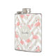 Pour une idée de cadeau pour elle, ce flacon personnalisé présente un motif de flamants roses toujours populaires sur un motif à rayures zig-zag gris clair et blanc chevron. Un cadre rond correspondant entoure votre monogramme et nom désiré dans le style.