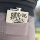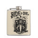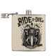 Illustration de vue avant moto avec mantra "Ride or Die" en gros texte et bannière "American Legend" en bas.