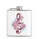 Pink treble clef with delicate, detailed pink Japanese cherry blossoms against white background painted over with light blue paint Blooming pink sakura.