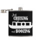 JUST CRUISING AND BOOZING. Funny canal narrowboat drinking quote hip flask. On the back is editable text where you can your name and boat name