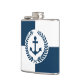 Nautical themed design with anchor and laurel wreath decoration over blue and white geometric background