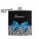 Personnalisez en ajoutant le nom de n'importe quelle fille à cette tendance noir et blanc empreinte de léopard motif 6 oz. flacon avec un ruban bleu cobalt classique élégant attaché dans un joli arc girly. Image imprimée plate, pas le ruban réel.