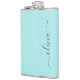 Nom de monogramme et initiale sarcelle bleu aqua pour une fiole de fête. C'est le cadeau idéal pour un 16e anniversaire, un mariage, une douche de mariée, un anniversaire, une baby shower ou une soirée d'enterrement de vie de jeune fille pour quelqu'un qui aime le luxe clinquant et les styles chics.
