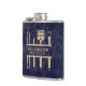 Texte doré classique nom personnalisé Maître de grill (maître cuisinier, maître chef), sur fond cuir synthétique marine, avec icônes d'outils de barbecue, un cadeau parfait pour papa/père, grand-père, beau-père, mari, fils... etc.