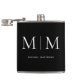 Moderne Minimaliste Noir Blanc Monogrammé Initial Classique Personnalisé Nom Flacon. Customisez cette fiole élégante avec 2 initiales monogrammes et nom entièrement monogrammé. Un cadeau parfait pour papa, un cadeau de marié, des idées cadeaux de Noël pour les pères, un cadeau de vacances pour grand-père, ou un cadeau unique pour petit ami.