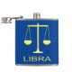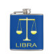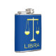 Cette énorme fiole de hanche présente une image art numérique d'une paire d'écailles de pesage de couleur dorée avec le mot Libra sous le texte en or. Un design amusant pour les gens célébrant un anniversaire né entre le 23 septembre et le 22 octobre sous le signe étoilé de Libra.
