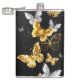 Or, bijoux et papillons blancs sur arrière - plan noir. Papillon doré.