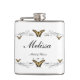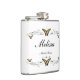 Papillons à queue noire et jaune de l'Est Tigre Swallowtail avec tourbillons à fleurs noires Flacon Maid of Honor keepsaké Flask. Une bonne d'honneur, un cadeau de remerciement ! Symboliquement, le papillon est souvent associé au changement, à la transformation, à la célébration, à l'amour jeune et à l'âme.
