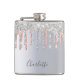 Un arrière - plan à l'aspect faux argent avec de l'or faux rose élégant, des gouttes de parties scintillant rose et argent, look goutte à goutte de peinture. Personnalisez et ajoutez un nom, écrit en gris foncé avec un grand script de style à la main moderne. Parfait pour un cadeau d'anniversaire ou pour une douche nuptiale.