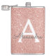 Parties scintillant Rose Rose Gold Faux et flacon Élégant Monogramme. Cette fiole peut être customisée pour inclure votre nom initial et prénom. Le Pink Rose Rose Gold Flask est parfait pour un anniversaire ou une fête de bachelorette.