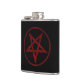 Pentagramme rouge, inversé, texturé en cercle, sur arrière - plan noir. Symbole occulte 666