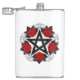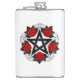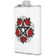 Pentagramme noir avec motif, décoré de fleurs, roses rouges avec feuilles sur arrière - plan blanc. Style tatouage.