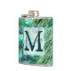 Flasques Plumes d'oiseaux de paon Turquoise Monogramme Flac
