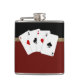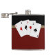 Classy rouge, noir et or arrière - plan et quatre as flacon de poker. Vous pouvez déplacer, redimensionner et supprimer les cartes de poker. Cette conception de flacon de poker et de jeu fonctionne bien pour un cadeau d'anniversaire de la personne, un cadeau de marié, un marié ou tout fan de jeu et de poker!