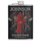 Pompier NOM Pompiers Département des pompiers Conception de drapeau USA - Emblème avec hydrant rouge et hache. Personnalisez avec votre nom, numéro de station/département et lieu.