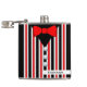 Cette fiole a un arrière - plan noir avec un gilet rayé rouge et blanc. Le gilet possède des boutons couleur argent. Pour finir le design il y a une cravate arc rouge. Vous pouvez customiser cette fiole.