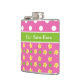 Un Hip Flask à personnaliser, avec de jolis motifs mixs'n'match : pois blancs jumbo sur rose profond et un mini-motif imprimé de primroses jaunes et pois verts, également sur rose profond. Une partie de la collection Posh & Painterly "Primroses".