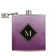 Ajoutez une touche d'élégance à cette fiole de monogramme violet et noir élégante et élégante. Cette conception simple et sophistiquée de dégradé brossé avec un cadre moderne en forme de losange avec une bordure en or peut être personnalisée en ajoutant votre initiale monogrammée. Impression plane, NON métallique.