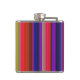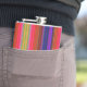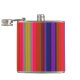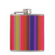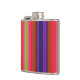Ce flacon brillamment coloré de hanche est décoré d'un motif rayé abstrait dans un spectre d'orange, de pourpre, de jaune, de rouge, de vert, de violet et de noir qui ressemble à un bel arc-en-ciel.