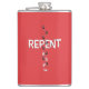 Les empreintes descendent, puis montent vers la croix, créées à partir des empreintes et du mot repent.