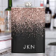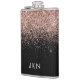 Rose Gold - Fard Rose et Noir Pailleté Métal Brossé Monogramme Nom et Initiales Flasque de Fête. C'est le cadeau parfait pour un anniversaire sweet 16, un mariage, une douche de mariée, un anniversaire de mariage, une baby shower ou une soirée d'enterrement de vie de jeune fille pour quelqu'un qui aime le luxe glamour et les styles chics.