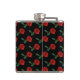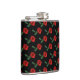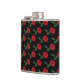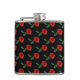 Ce flacon de hanche comporte un motif de répétition d'un rose rouge d'écarlate simple exquise avec trois feuilles verts sur un fond noir.