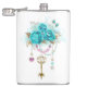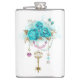 Clé d'or antique aux roses turquoise tendance décorée de feuilles d'or blanc et de perles rose et bleu. Couleur tendance. Rose turquoise. Blanc doré. Tiffany bleu.